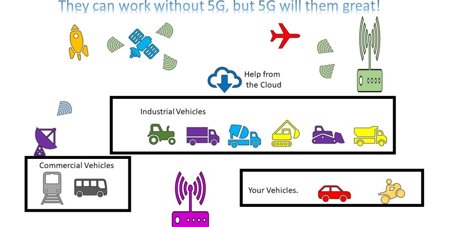 So glad you asked! It means that we don’t need 5G or wireless to make the autonomous vehicles work. We do need wireless to collect the data, do updates, monitor what’s going on, get real-time analytics, get emergency alerts. This all adds up to a system that will make 5G more efficient. Why? Because some of that data can be an IOT function, which means low latency and short data bursts while all the data collection and upgrades could be on the broadband network. Both can be handled beautifully on the 5G system.